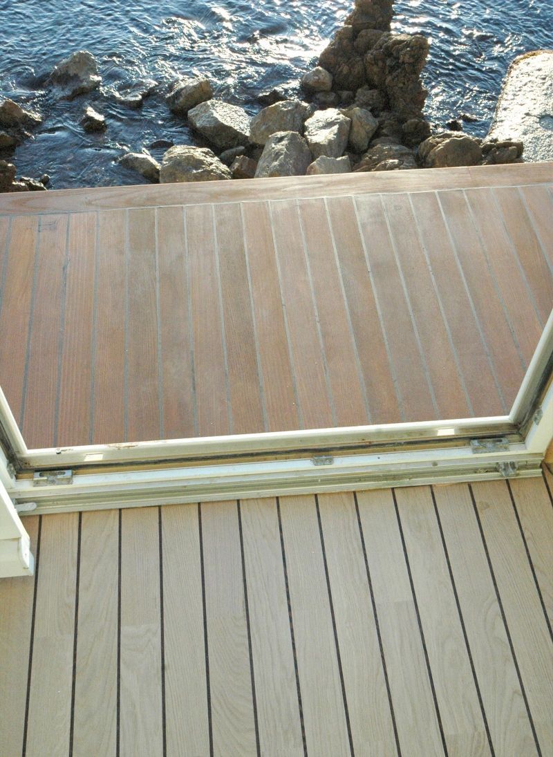 Haus am Meer. Ziel war es in Zusammenarbeit mit dem Kunden ein völlig entkerntes Feriendomizil neues Leben einzuhauchen. Angefangen beim Holzboden in Schiffsdeck-Optik bis hin zu den Wandverkleidungen mit integriertem Sonneschutz für die Bullaugen, flächenbündigen Türen und grifflosen Kleiderschränken. Auch auf Details wie der Bodenverlauf von Innen nach Außen war uns sehr wichtig.