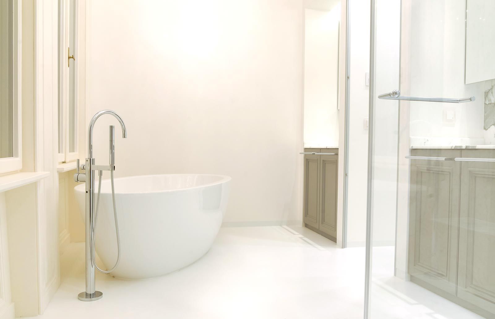 Farblich angepasste Schleiflackflächen in den verschiedensten Glanzgraden, kombiniert mit lackierten Glasflächen.