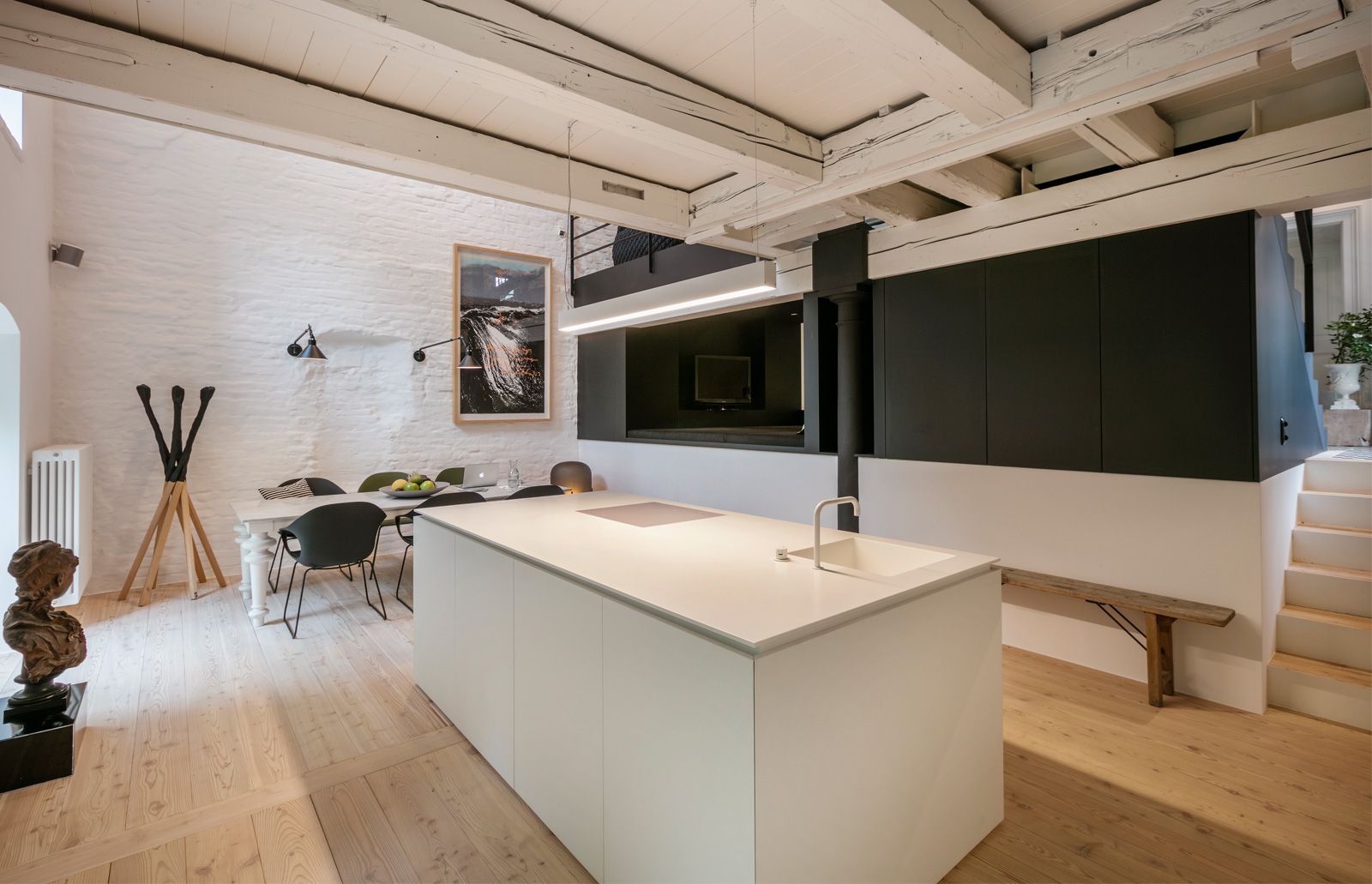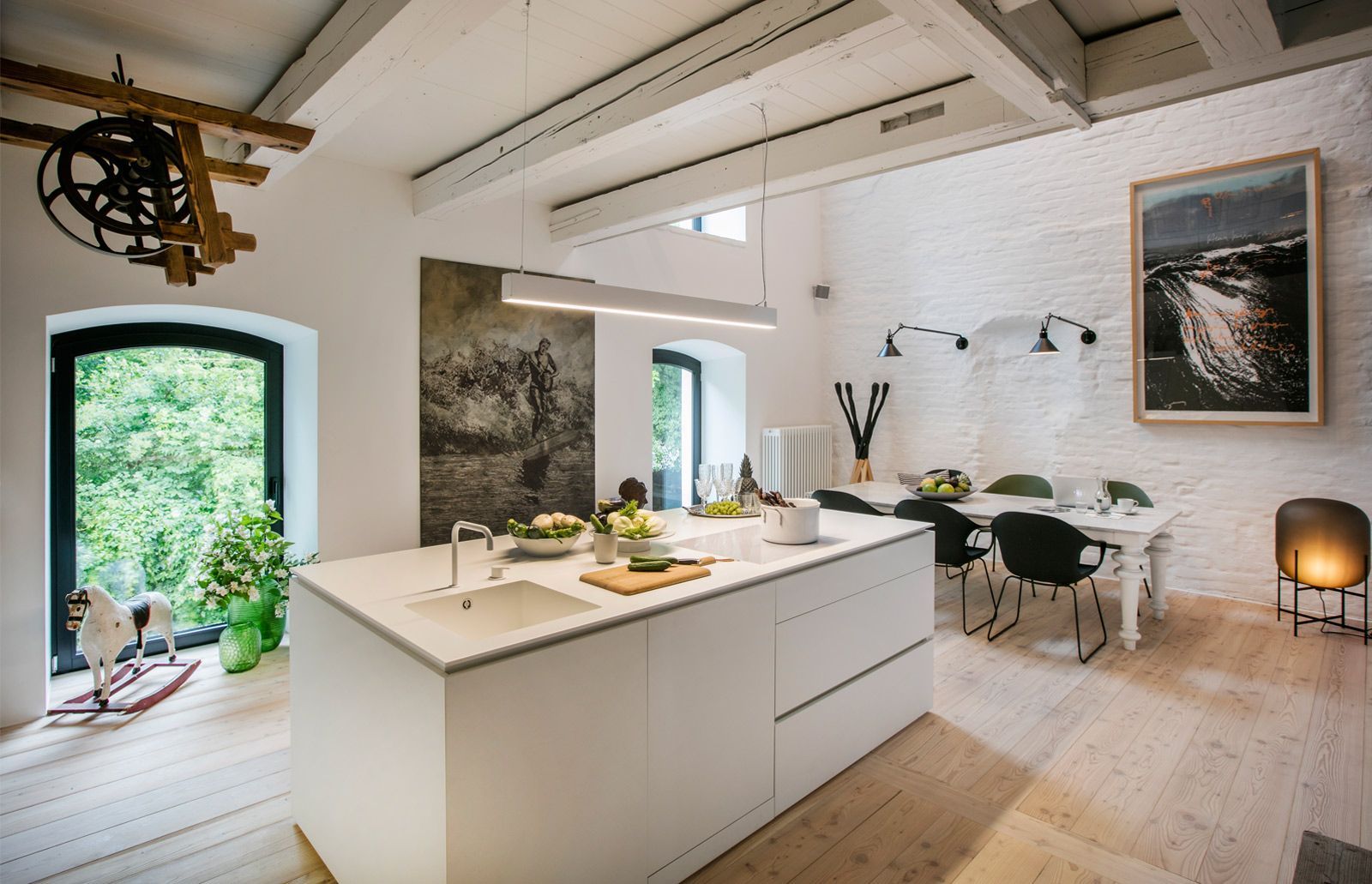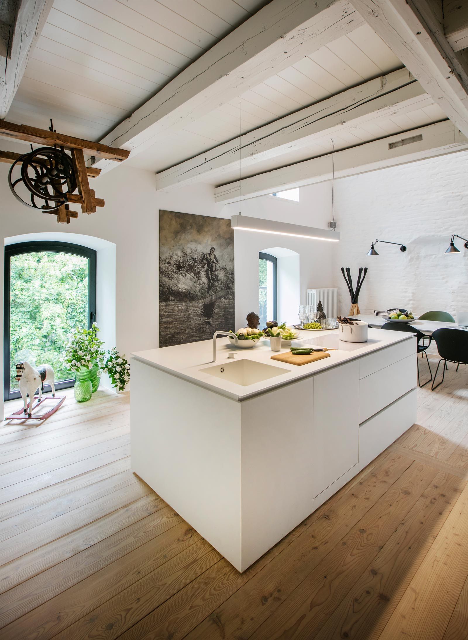 Umbau und Gestaltung eines ausgebrannten Mühlengebäudes. Es wurde mit viel Gespür für Architektur und Interior Design zu neuem Leben erweckt. In historischer Architektur wurden innovative Ideen umgesetzt — ein Konzept zwischen Geschichte & Gegenwart.
