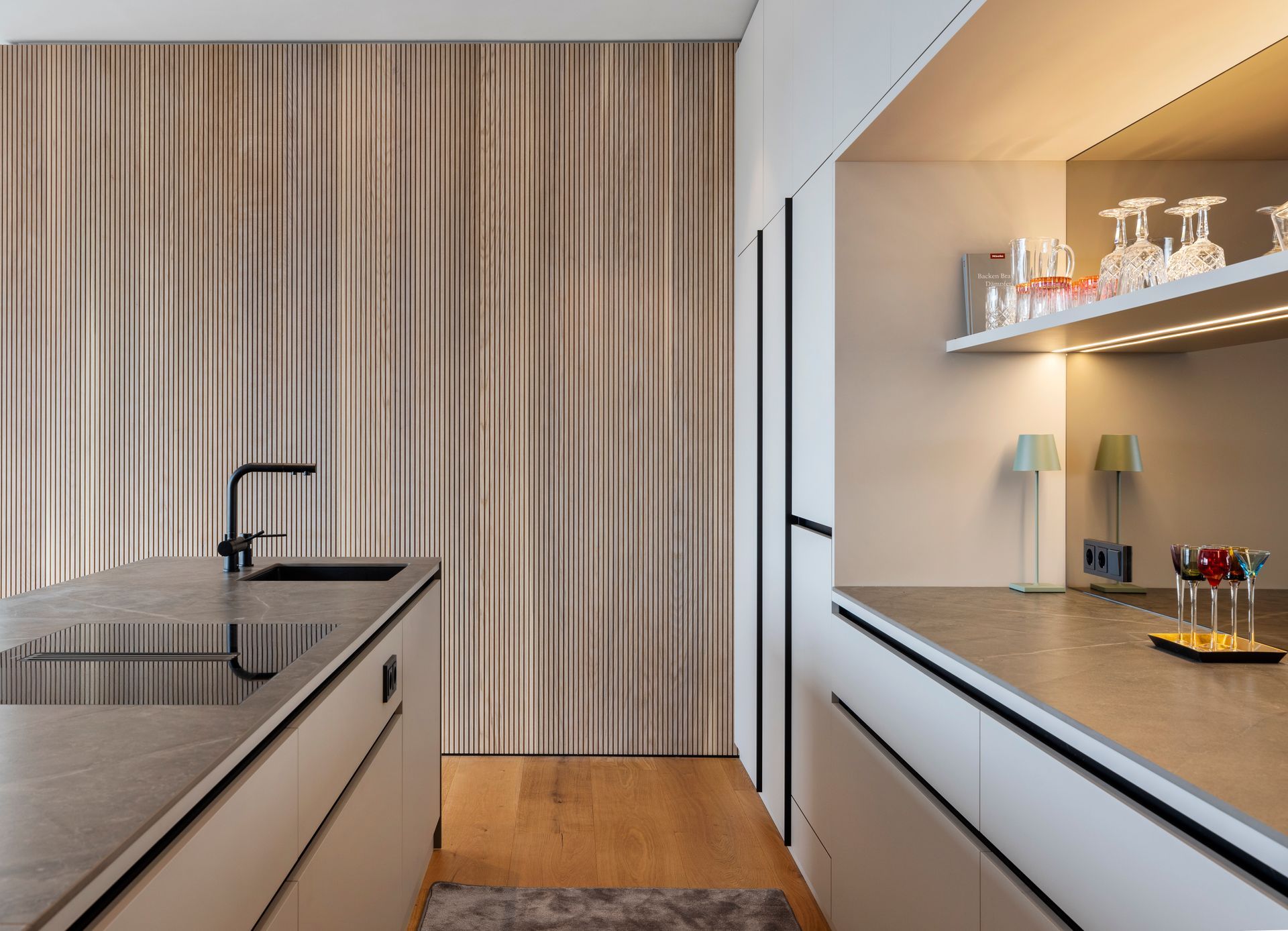 Die Küche zeichnet sich durch eine elegante Mischung aus moderner Funktionalität und natürlichem Design aus.
