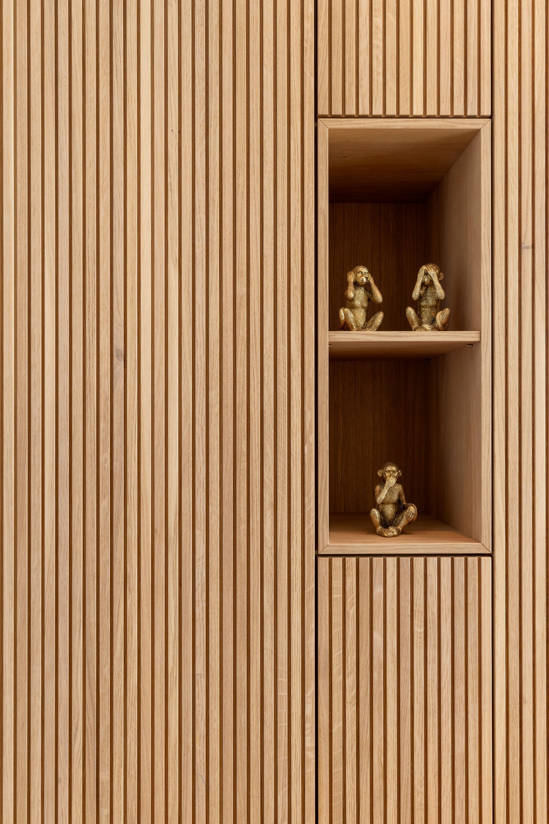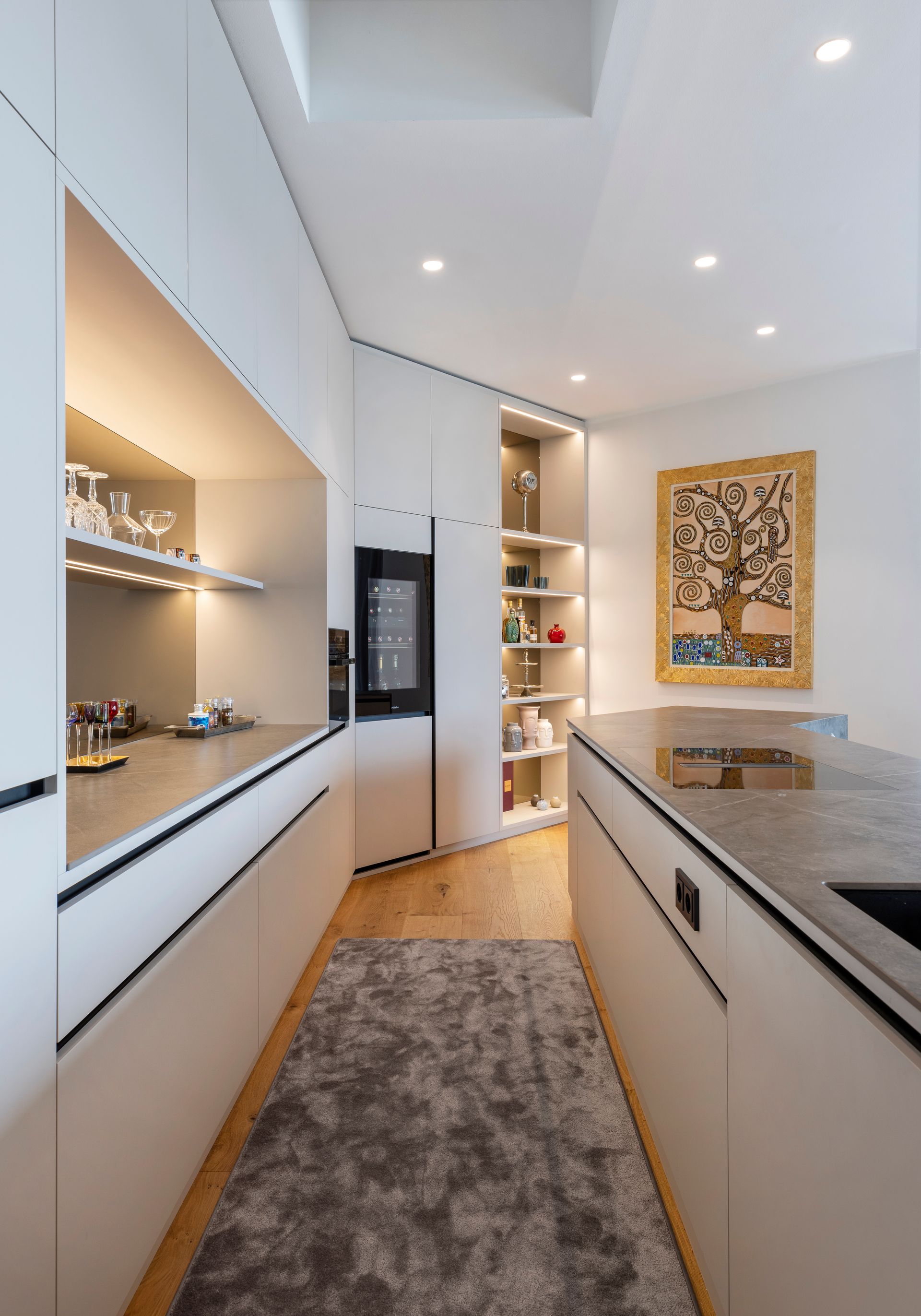 Deckenhoher Einbau mit präzisen Schattenfugen an Decke und Boden sorgen für ein minimalistisches und hochwertiges Erscheinungsbild.