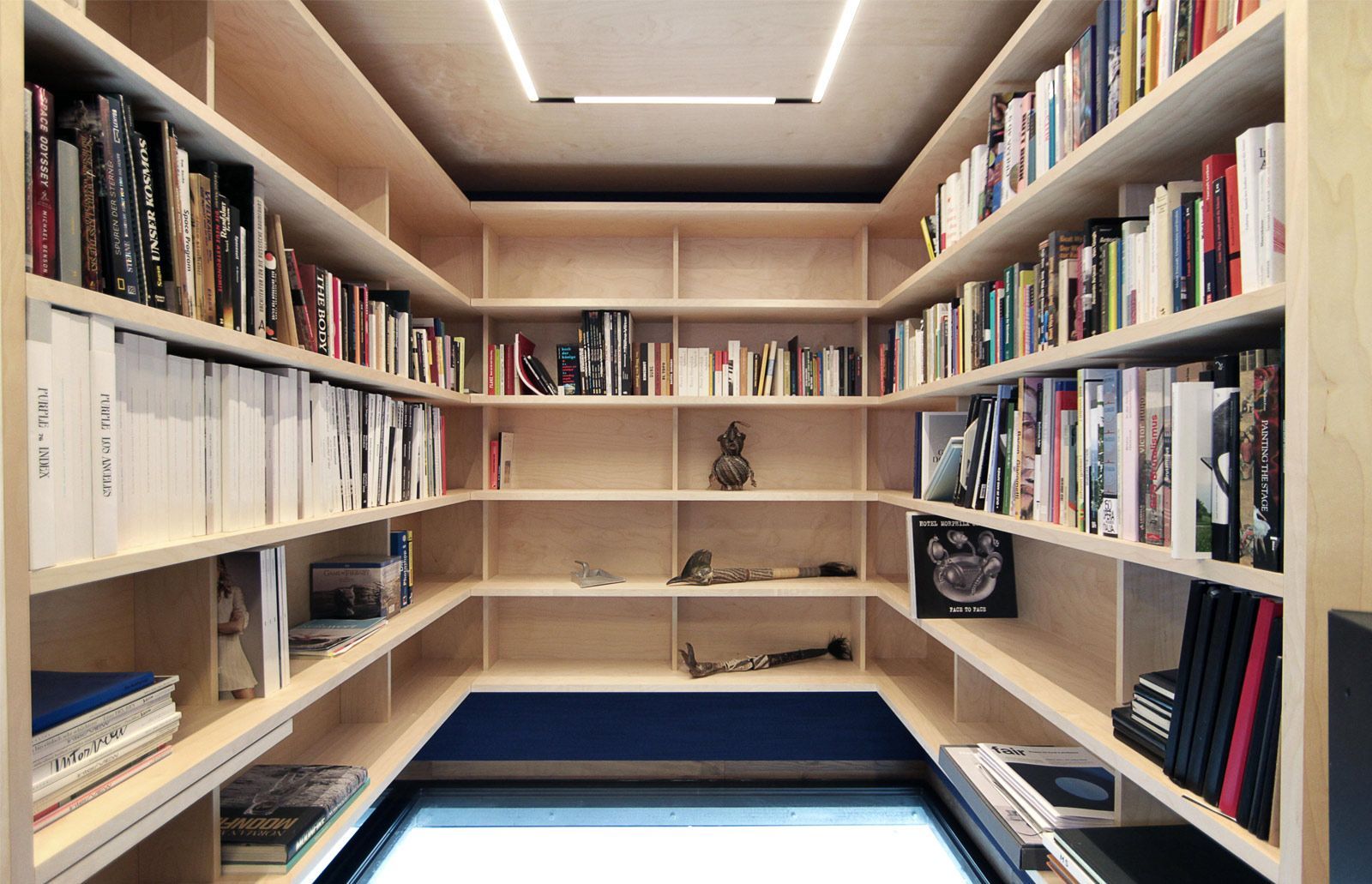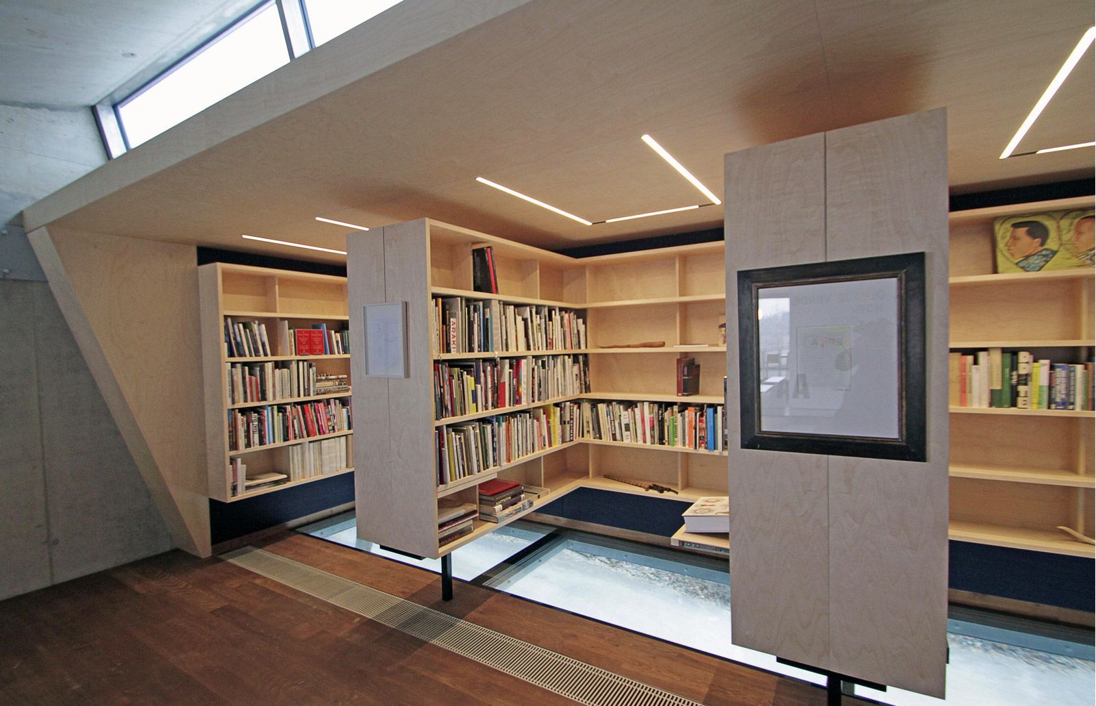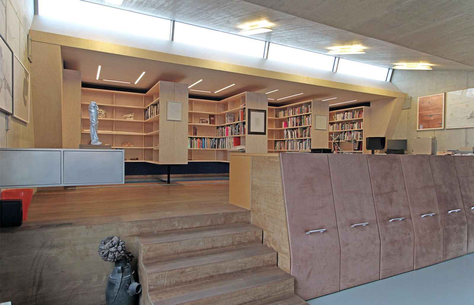 Bei diesem Projekt ging es darum in einem modernen Zubau eine Bibliothek zu integrieren, welche sich an die Formen und Linien des Gebäudes anpasst und durch die furnierten Flächen einen Kontrast schafft. Um den Glasboden die volle Wirkung zu gebe wurden die Regale schwebend ausgeführt. Um diesen Bereich richtig in Szene zu setzen wurden flächenbündige LED-Schienen verbaut.